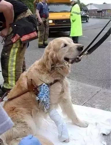 在另一起车祸中,一只狗子在车主受伤后,依然不离不弃地守护在车主身边。直到救援人员赶到,它才松了一口气。